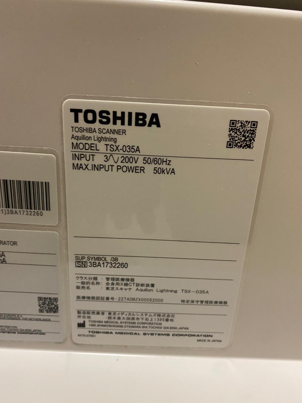 TOSHIBA Aquilion Lightning 16 Row, 32 Slices Year of manufacture 2017 Slice Time 32,216 sec Exp Count 35,277 Software Version Aquilion Lightning V7.0 Release SP0514J