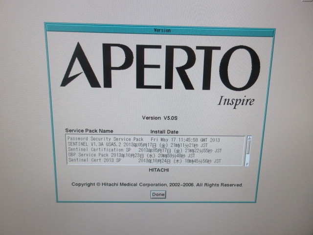 HITACHI Aperto Inspire 0.4T Year of manufacture 2005 Coils - MR-QFC-82AN (Body Coil) - MR-JCR-83 (Joint Coil L) - MR-JCR-82 (Joint Coil M) - MR-QHC-81 (Head Coil) - MR-QKC-83 (Knee Coil) Software version: V5.0S Ready to be shipped