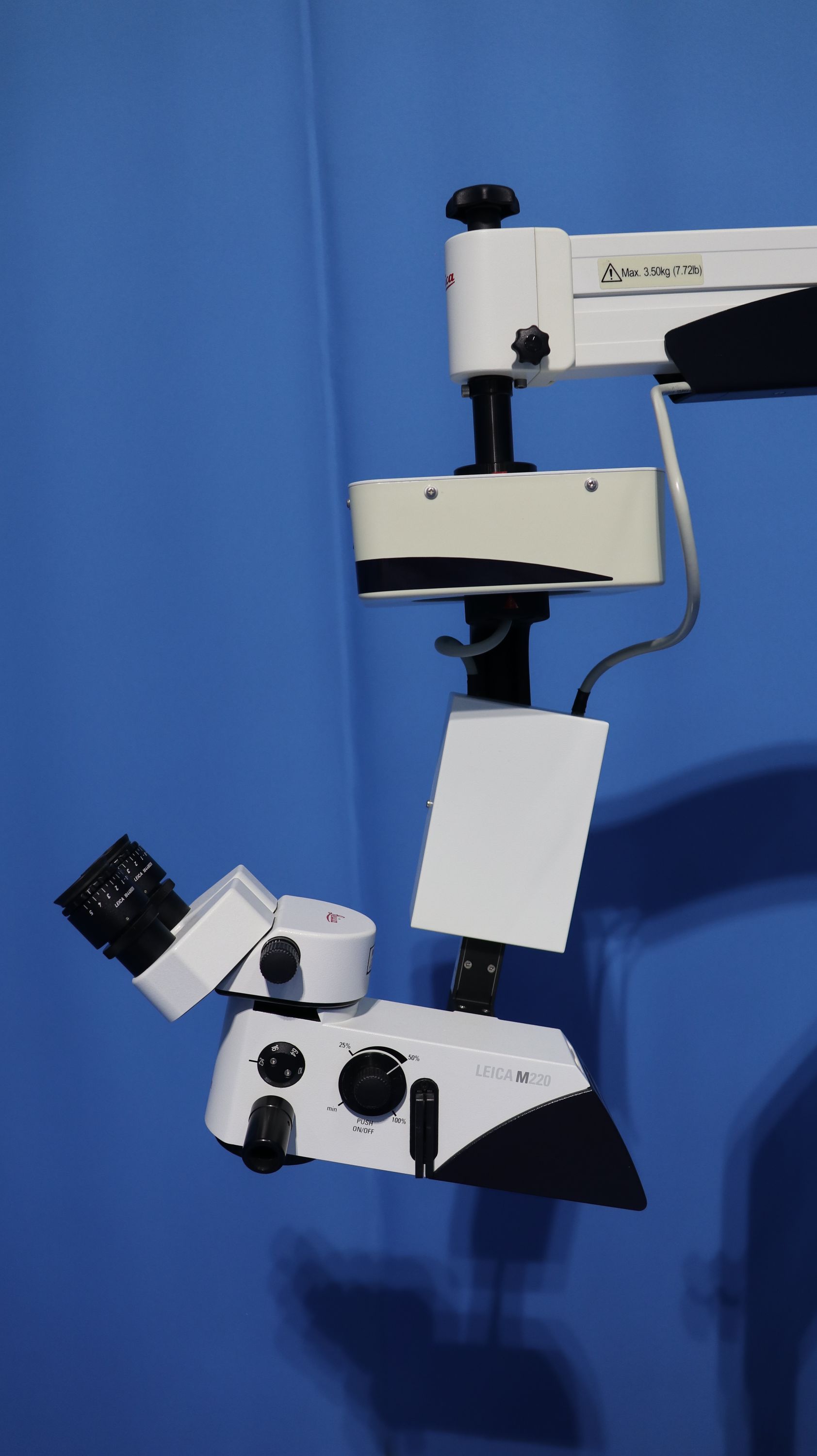LEICA M220 on F12 Stand Specs - High productivity - Fatigue-free surgery - Innovative LED-illumination - Low cost of ownership - Maximum positioning flexibility - Leica Quality - Modularity and upgradeability Accessories - Footswitch Fully operational