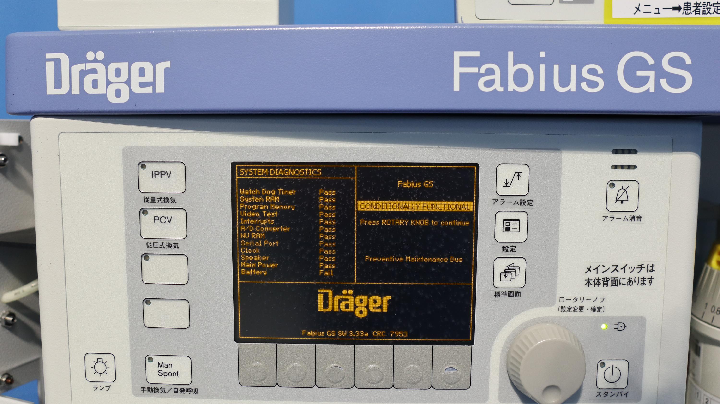 Drager Fabius GS Year of manufacture 2004 Vaporizer - Sevo Accessories - Infinity Delta XL Monitor - Drager R50 Network Recorder Fully operational